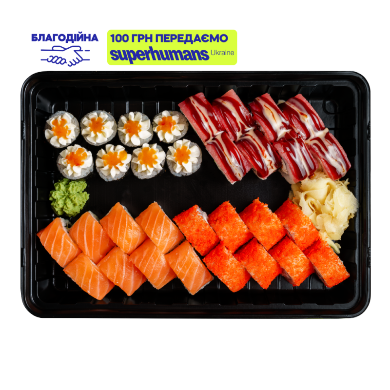 To this parces is added free 4 pieces of soy sauces, 30 g of ginger, 20 g of wasabi.