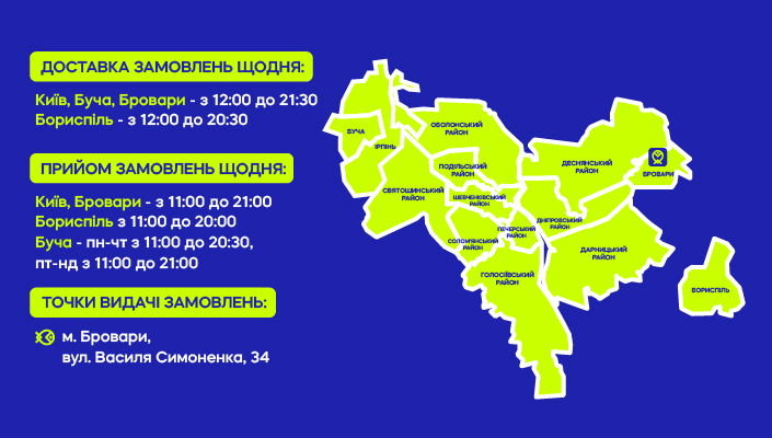 Sushi Poshta coverage area: Kyiv, Boryspil, Brovary and Bucha.