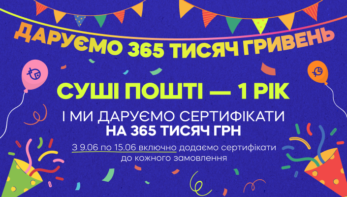 From June 9 to 15, we are adding certificates for 100, 200, 300, 400 and 500 UAH to each order.