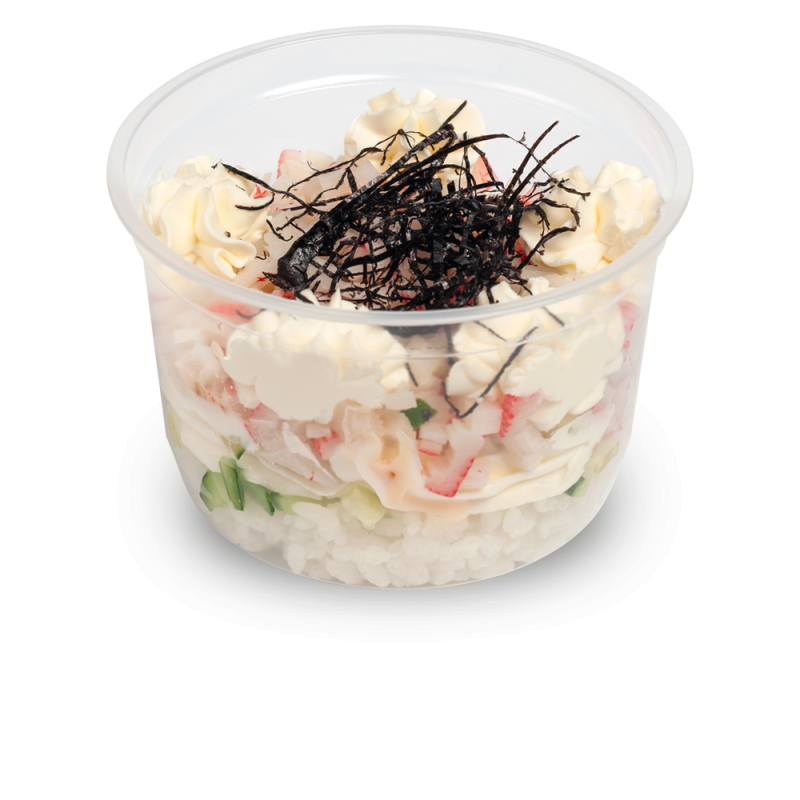 Rice, crab sticks, cream cheese, nori, cucumber, sweet chili mayonnaise